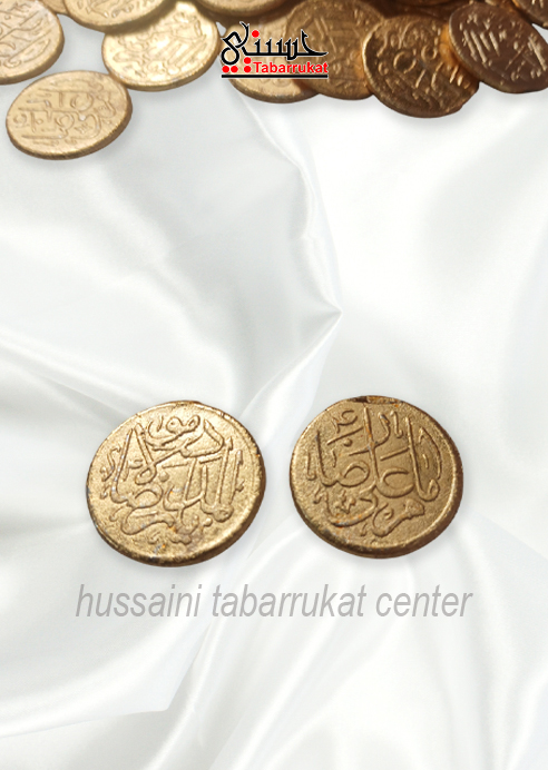 Coins crafted from brass, elegantly engraved with “Imam Raza (as),” specially designed for sharing during Jashan, Majlis, and other spiritual or religious events.