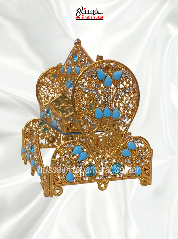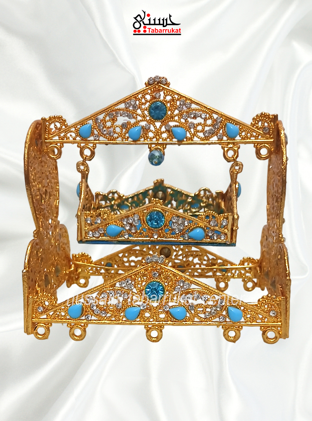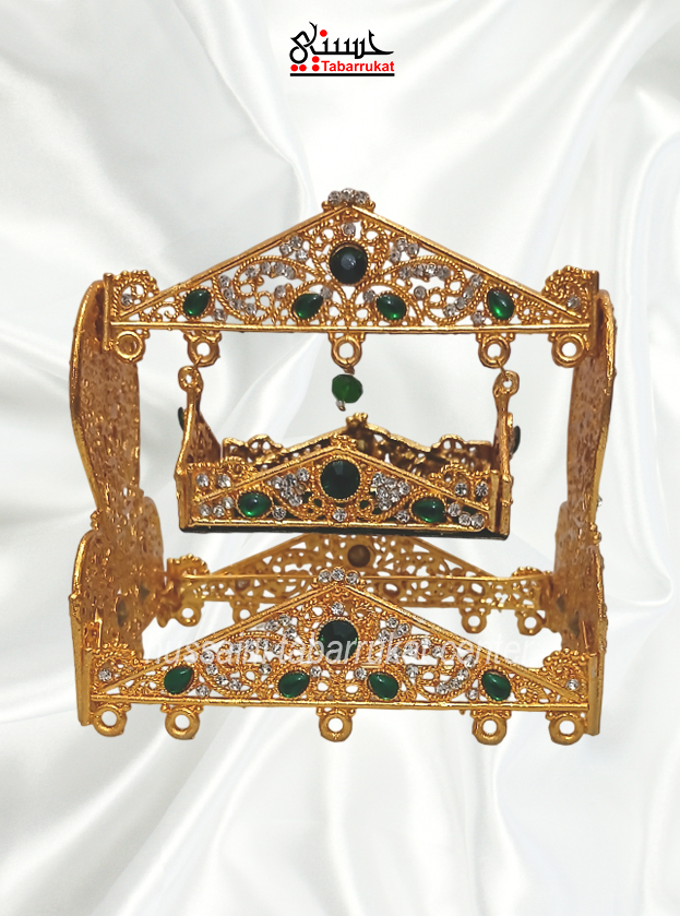 Enhance the spiritual ambiance of your home Azakhana with this exquisitely designed Kashi Jhoolah, beautifully adorned with premium Green & Blue stone work. Crafted with care and reverence, this sacred piece reflects love and respect for Shahzada Ali Asghar (A.S), making it a meaningful addition to your religious decor.