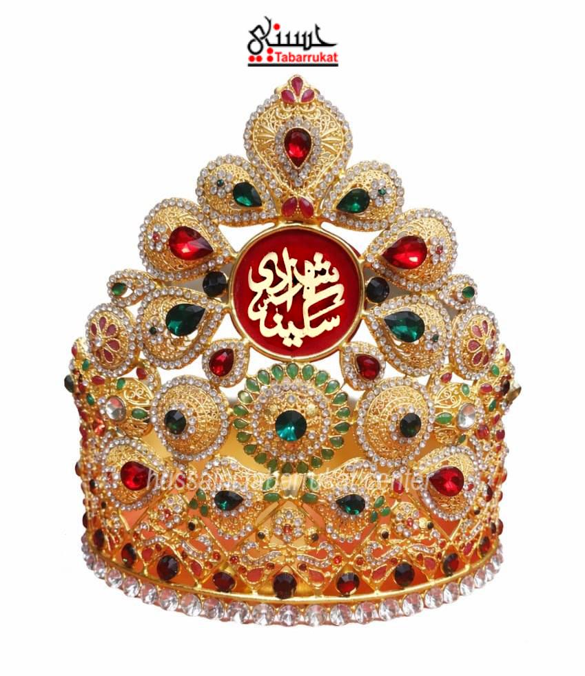 Shahzada Sakina s.a Kashi Gold Tajj, adorned with intricate stonework, radiates majesty and devotion. “This Tajj can be customized with a name of your choice. Please provide the desired name at the time of order