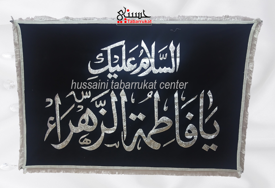 Velvet Banner featuring Bibi Fatima (sa) beautifully displayed. Crafted with rich velvet fabric, this banner adds elegance and spiritual significance to your home Azakhana, Majlis, or religious gatherings, serving as a reminder of devotion and reverence. Size :7X5 Ft