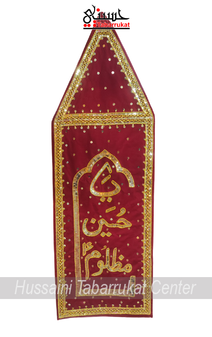 Beautiful “Ya Hussain Mazloom a.s Sequence Work Patka” crafted with fine golden handwork and a clean, elegant border.